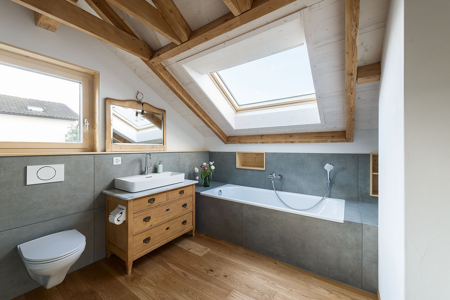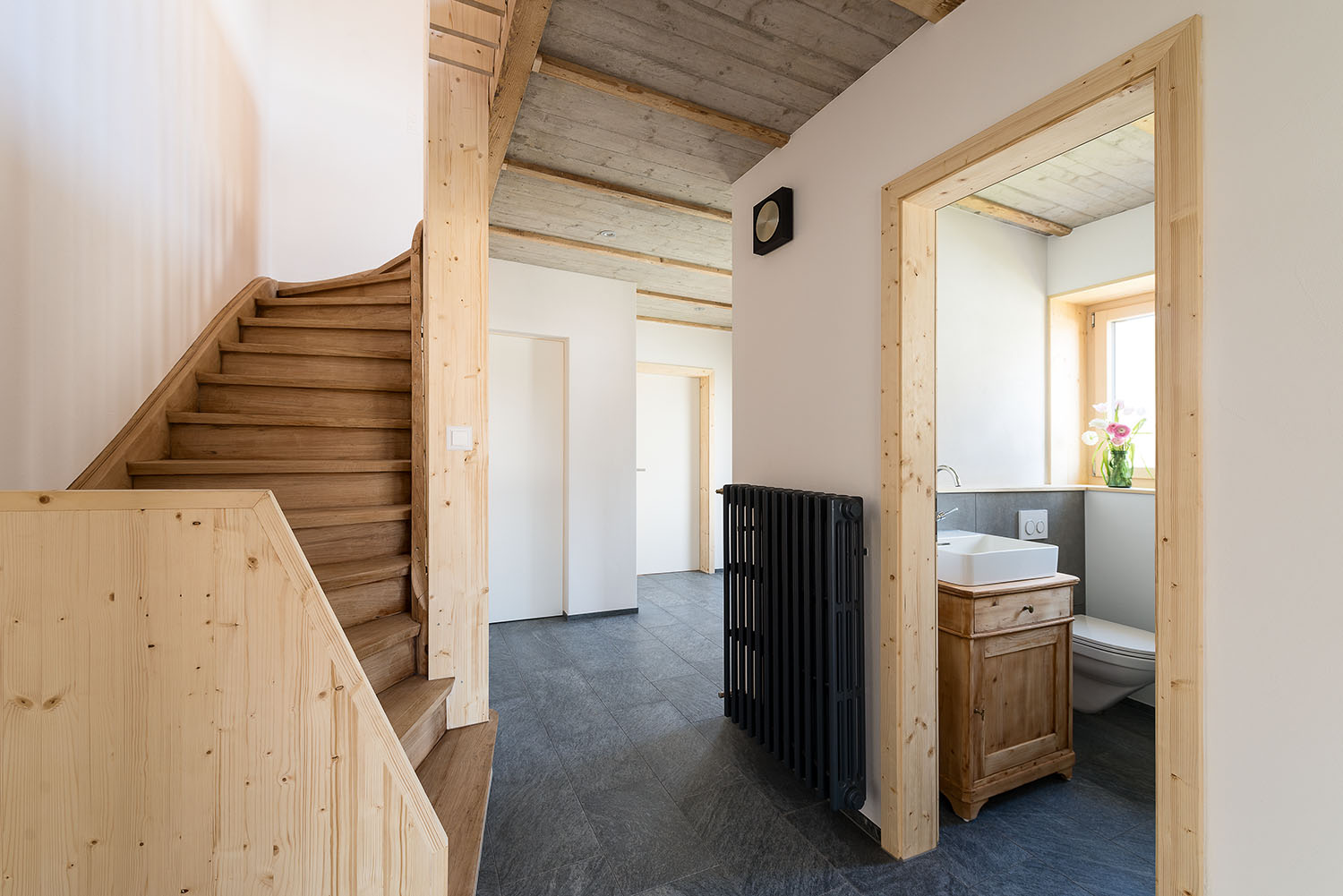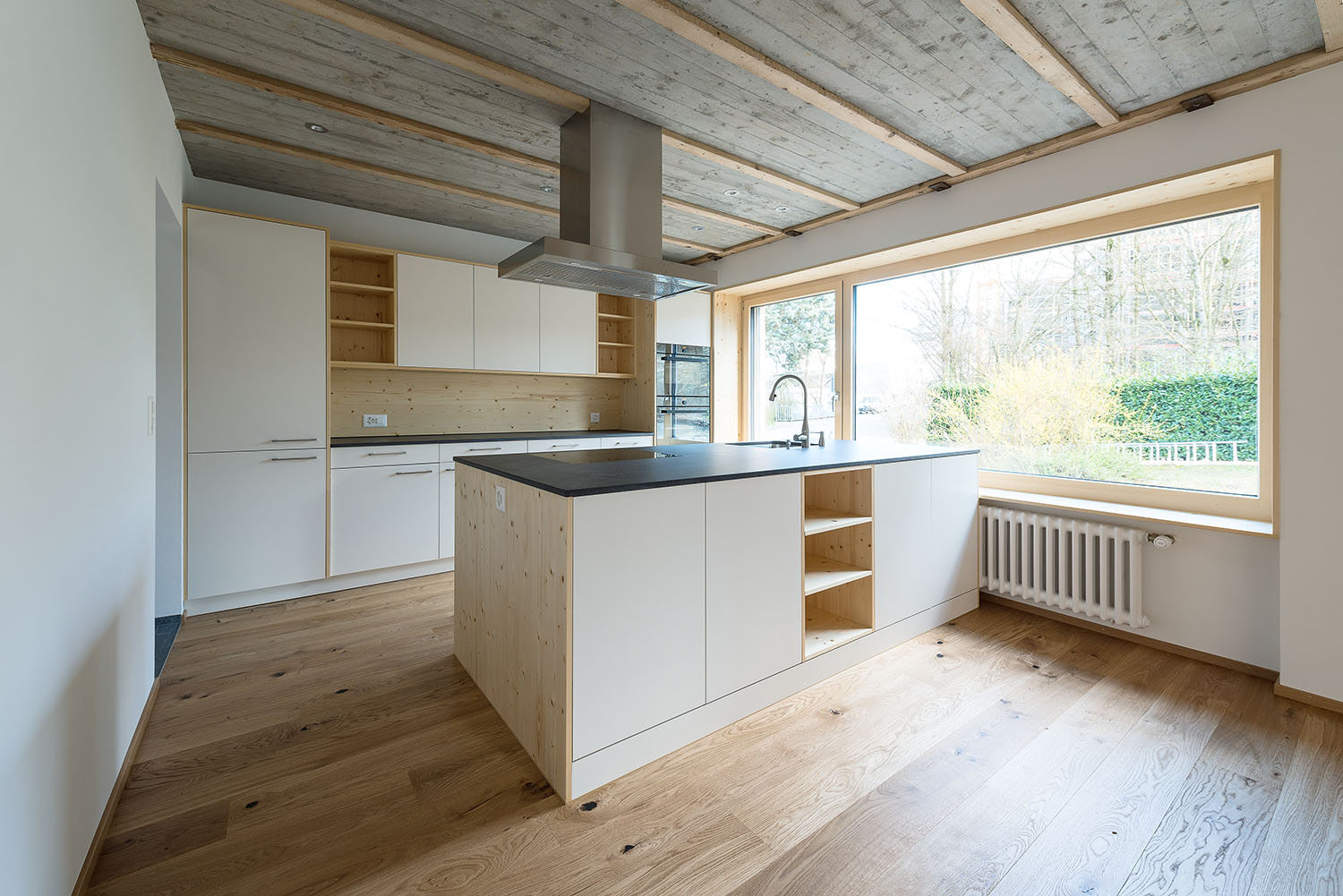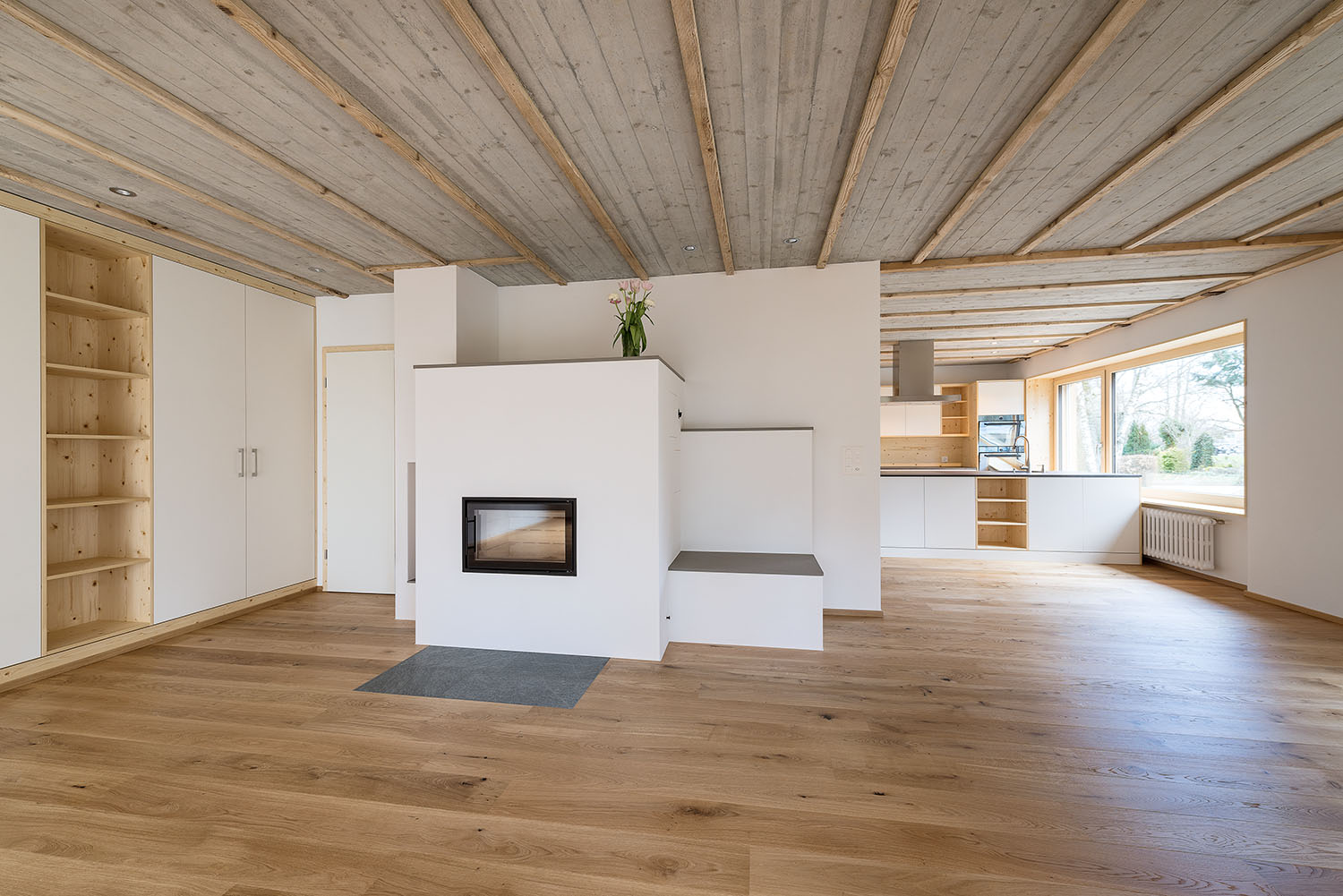 Sanierung des Einfamilienhauses aus dem Jahr 1955 in Muri AG mit inneren Umbauten und Anpassungen der Raumstruktur, neuen Badzimmern und Küche. Energetische Sanierung der gesamten Gebäudehülle in Minergiestandard, Ersatz der Ölheizung durch eine Luft/Wasser Wärmepumpe, kombiniert mit PV Anlage (Indach) und Holzspeicherofen im Wohnzimmer. Gesamtheitlicher Ersatz der inneren und äusseren Oberflächen mit natürlichen und nachhaltigen Materialien. Neuer Anbau für den Wohnbereich mit Dachterrasse in Massivbauweise und äusserer Horizontalschalung.