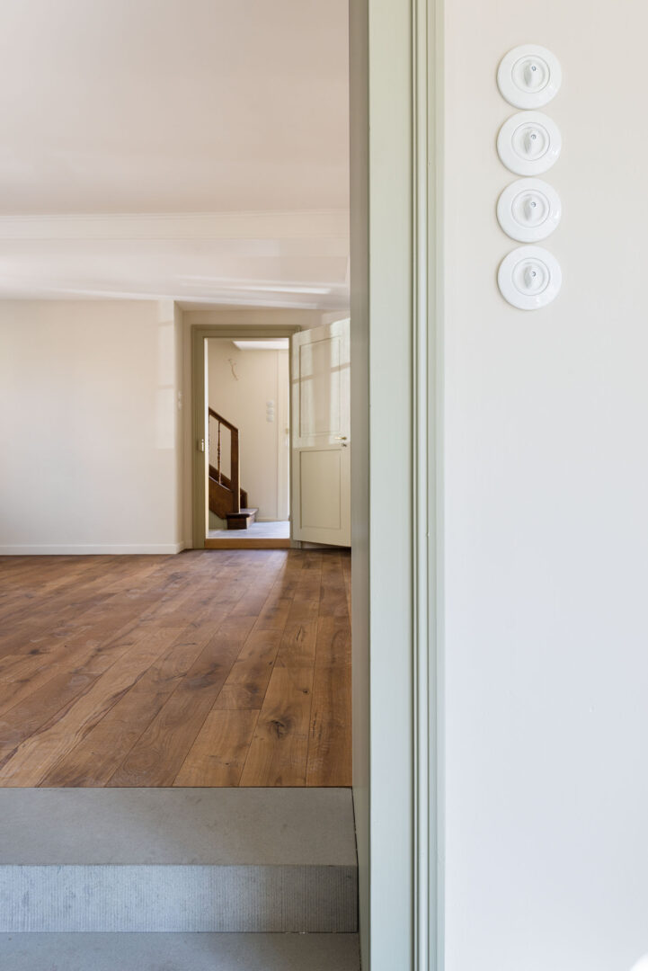 Umbau des unter Denkmalschutz stehenden Wohnhauses mit Futtertenn und Stallanbau.