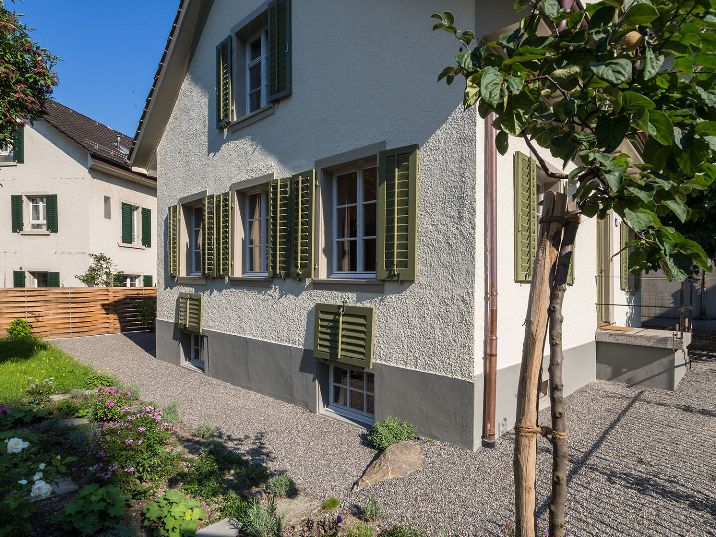 Fassaden-und Dachrenovation mit energetischen Massnahmen an der gesamten Gebäudehülle. Innenrenovation mit Erneuerung der Haustechnik.