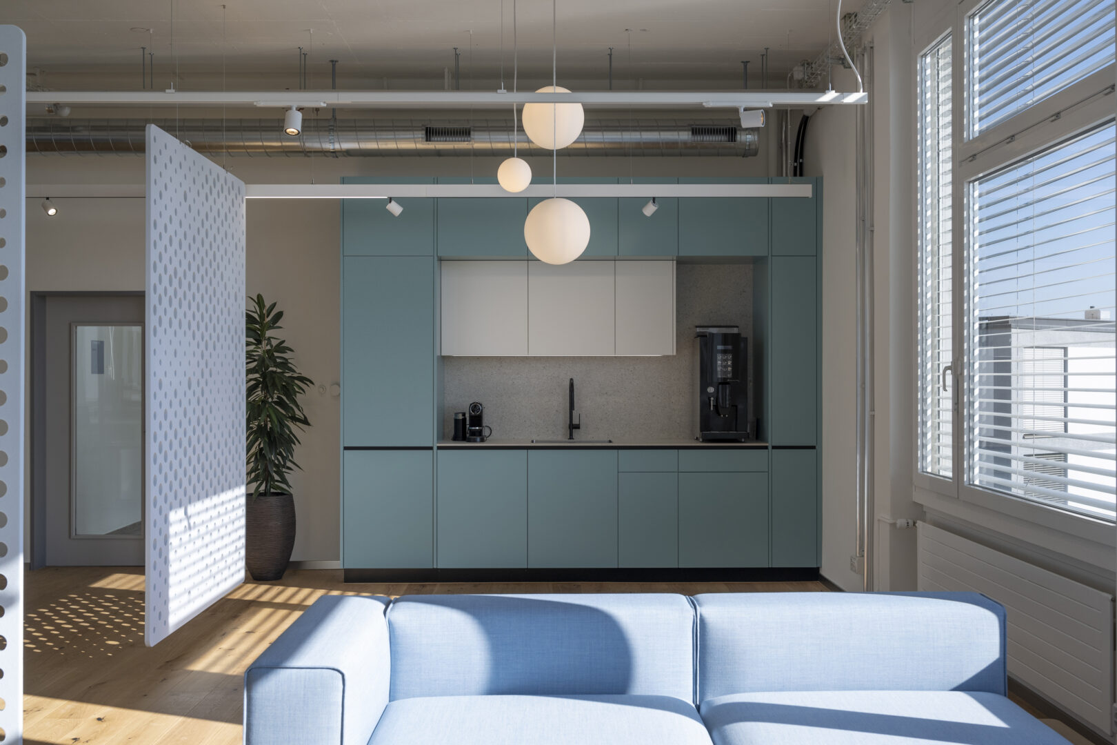 Ergänzung der Büro- und Laborflächen mit Pausen- und Aufenthaltsräumen, Garderoben, Duschen und Toilettenanlagen.