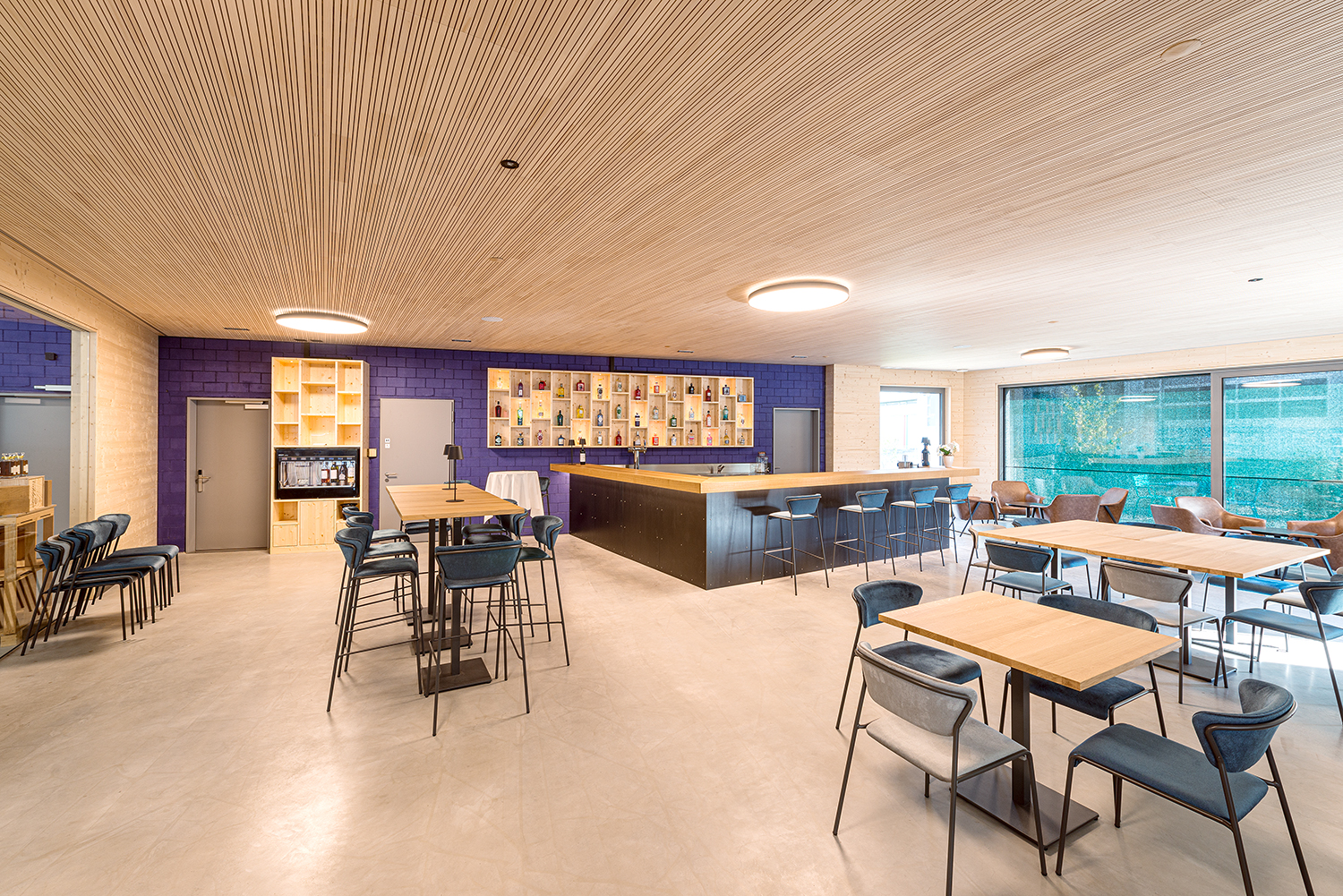 Sanierung des bestehenden Lagergebäudes und Umbau zum neuen Getränkeabholmarkt mit Einbau von Büros, Personalräumen und Eventlounge.
