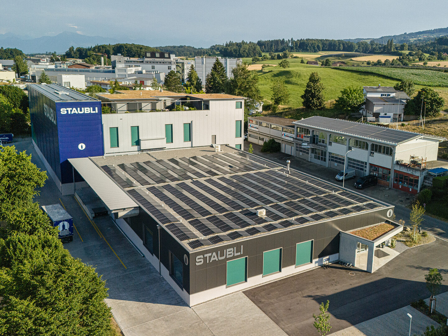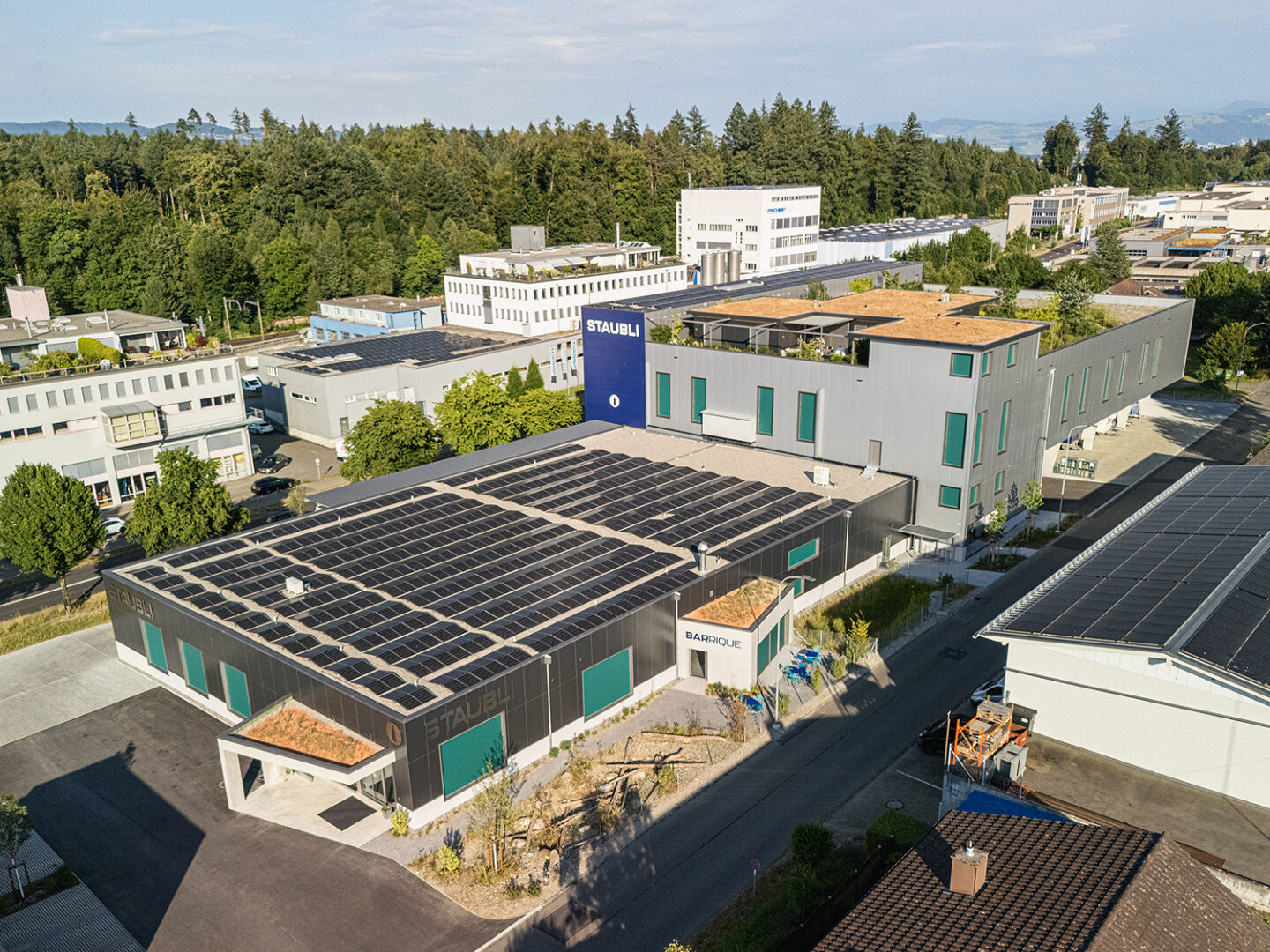 Extensive bis intensive Dachbegrünung in Kombination mit Photovoltaikflächen auf dem Dach.
