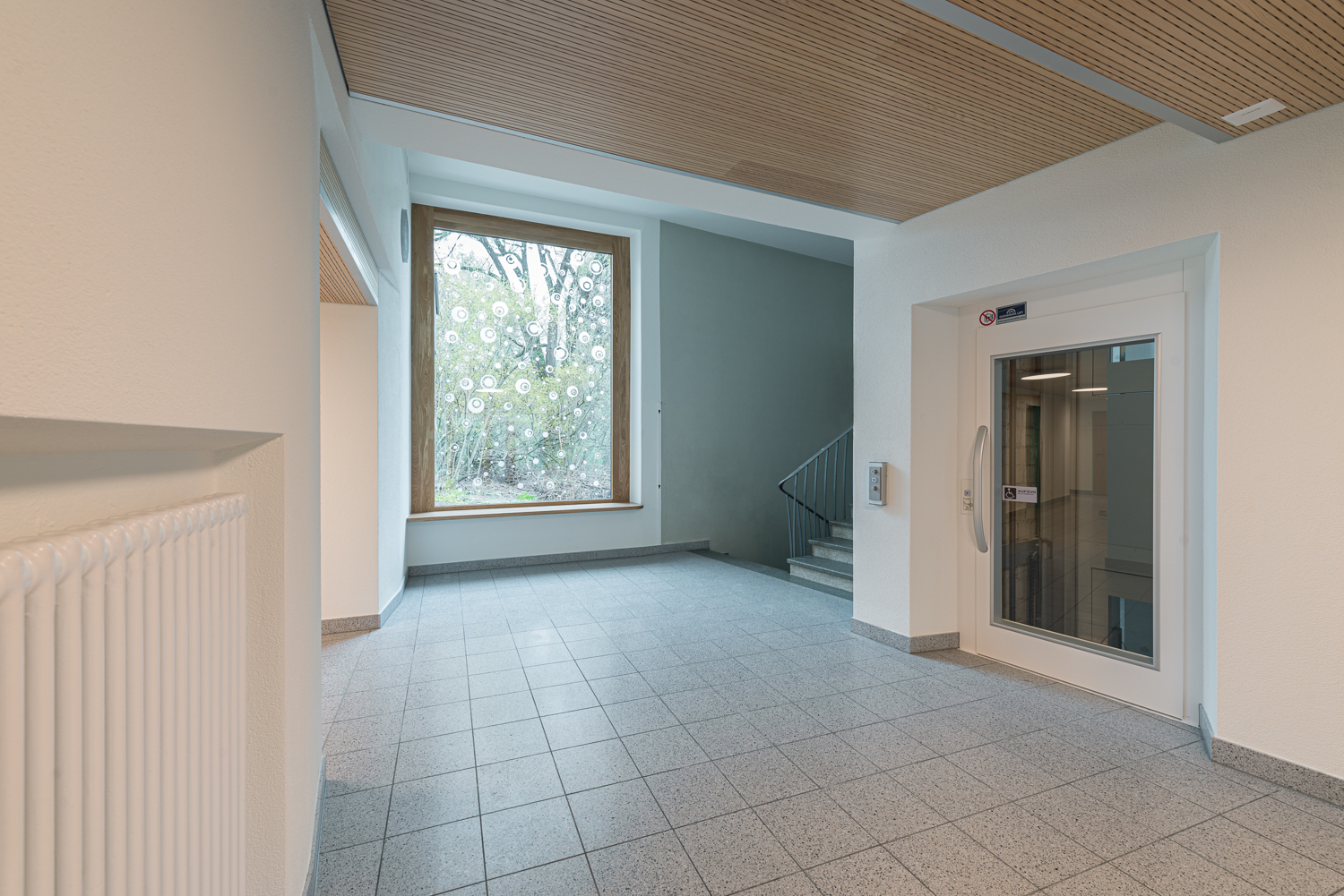 Anpassung des ganzen Gebäudekomplexes und der Eingangsbereiche an die Behindertengerechtigkeit.