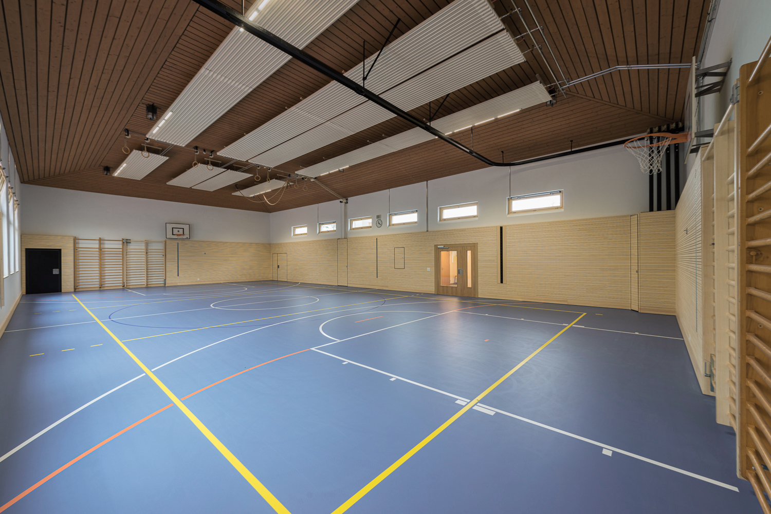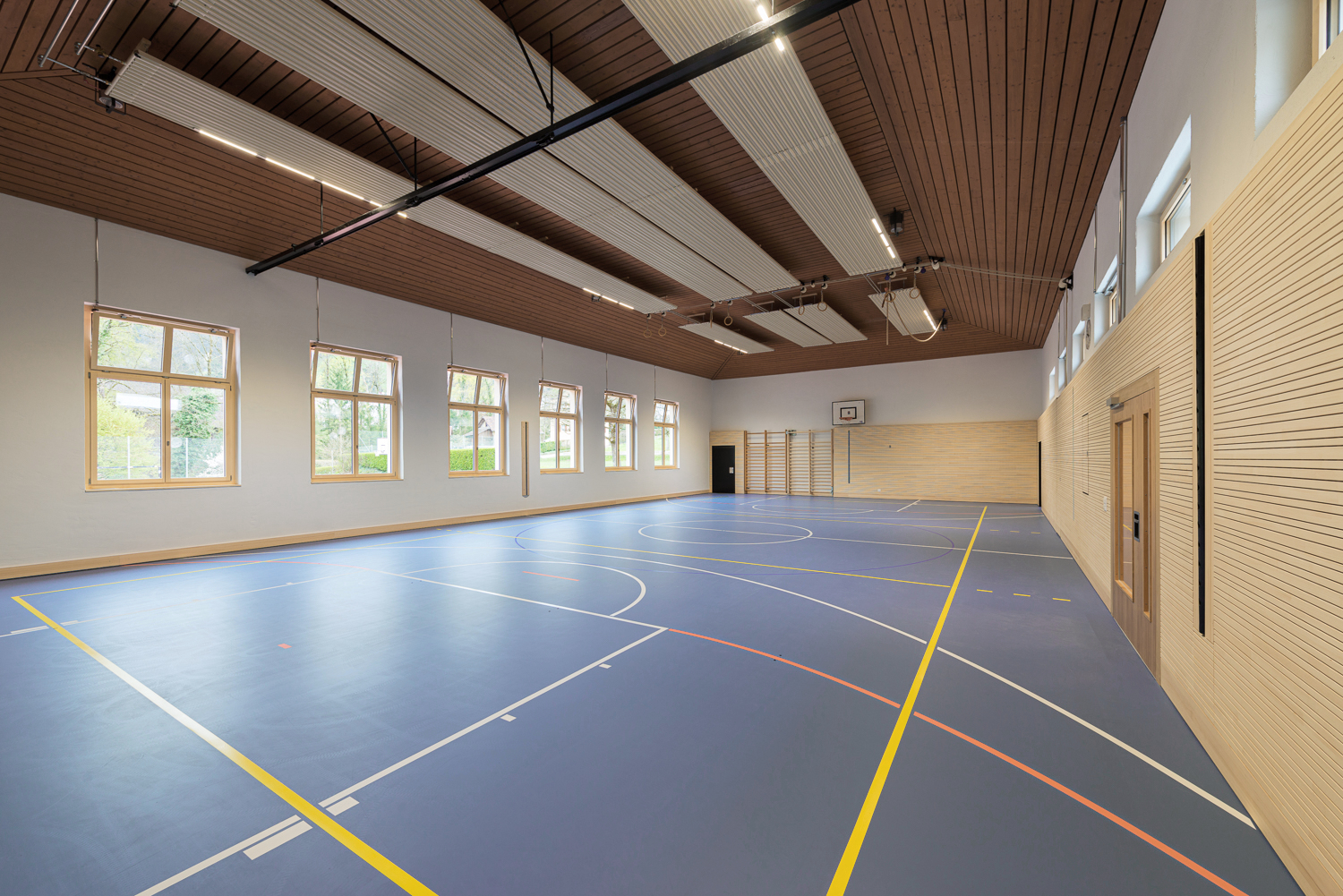 Sanierung der Turnhalle aus dem Jahr 1914 unter Berücksichtigung der heute geltenden Sicherheitsvorschriften.